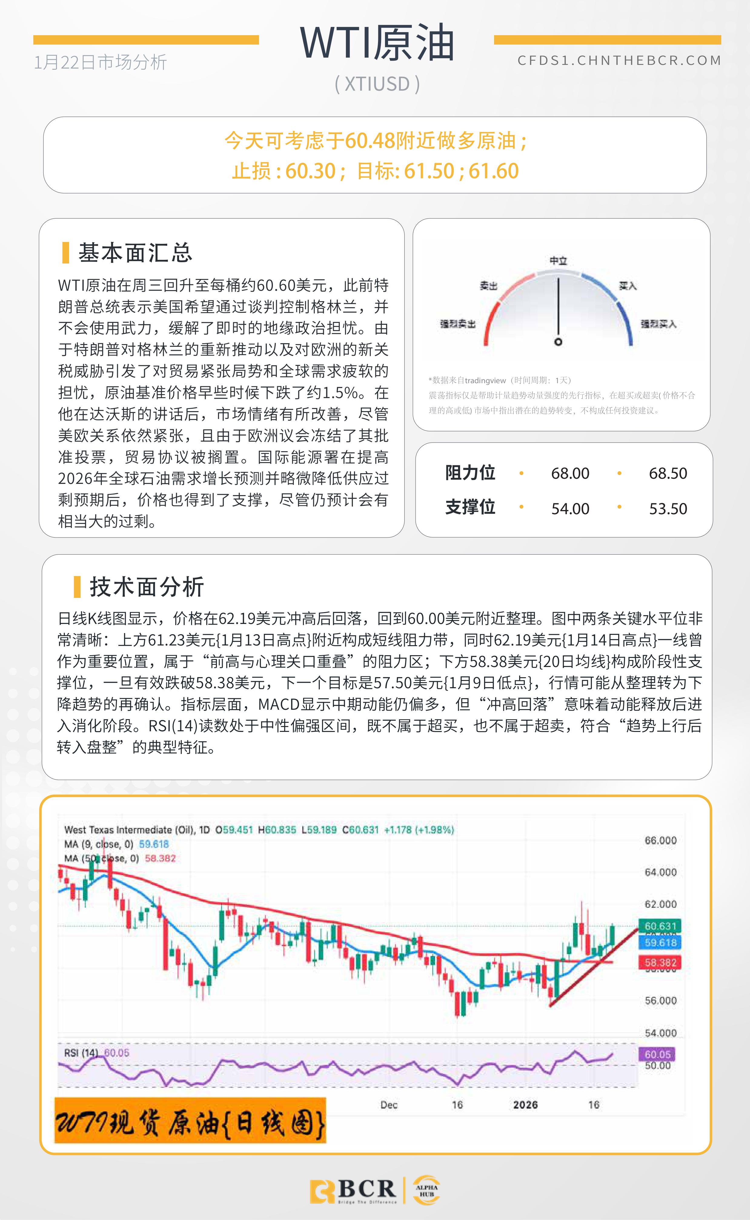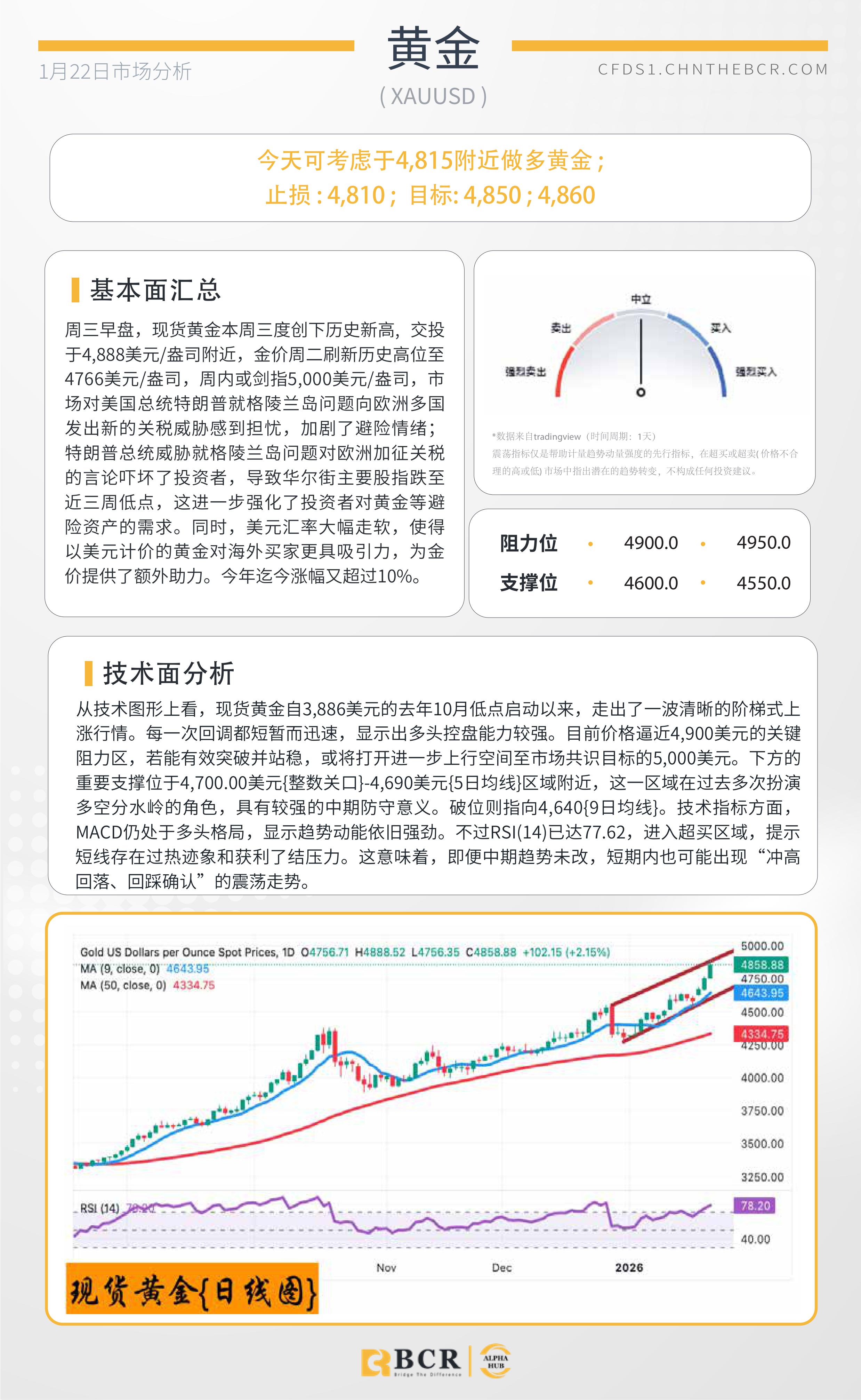 BCR每日早评及分析-2026年1月22日
